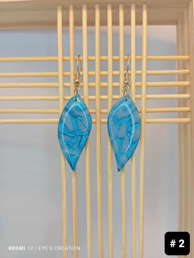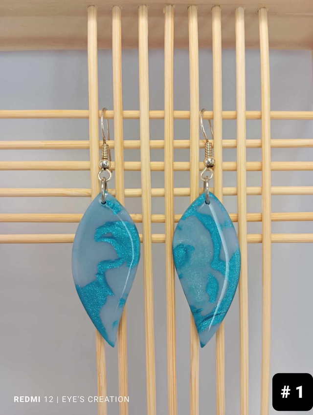 Je vous propose ces magnifiques boucles d'oreilles d'un joli bleu-gris avec ses veines turquoises pailletées. La face arrière est lissée, vernie et de couleur turquoise unie.